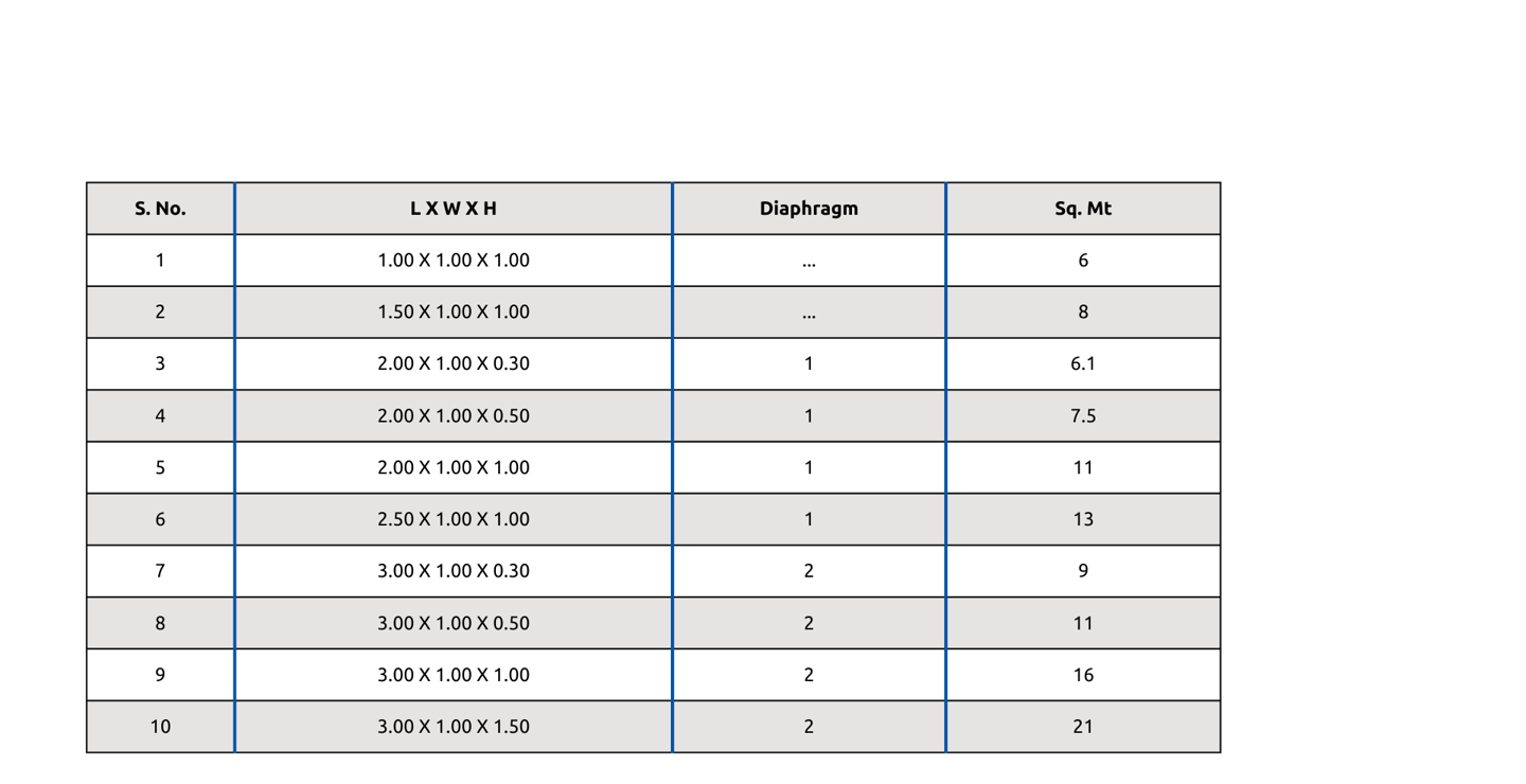 Area Calculation : L X 2(W+H)+(2+No of Diaphragm)XW X H