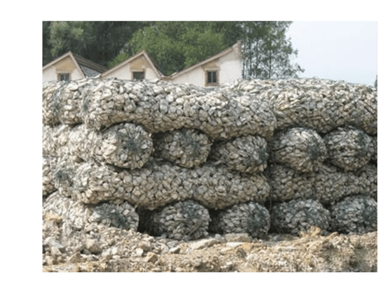 Structure of Sack Gabion The sack gabion has a solid and durable structure. The sack gabion consists of mesh wire, selvedge wire, lacing wire, reinforced wire and tie wire. The mesh wires are produced into a series of double twist hexagonal shapes sheet. Then the sheet will be wrapped by the thicker selvedge wire to form a reinforced cylindrical basket. And both end of the sack gabions will be added lacing wire, which is used to bind the gabion. There are reinforcing wires inserted when producing the sack gabion to facilitate closing during installation.